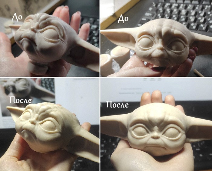 Промежуточных фотографий этих процессов нет. Поэтому просто поделюсь уже готовым результатом пересоздания Грогу спустя 2 года...