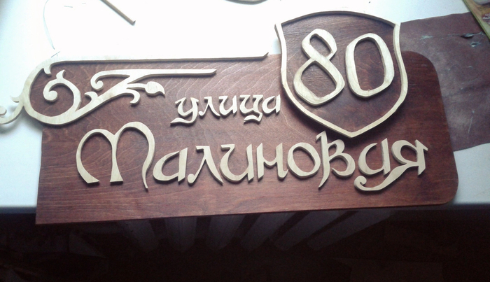 Как-то раз, желая освежить школьные навыки работы с фанерой и лобзиком, задумал я изготовить адресную табличку для одного хорошего человека. Две недели неспешного труда, две бутылочки коньяка морилки и куча поломанных лобзиковых полотен всех форм, размеров и производителей.