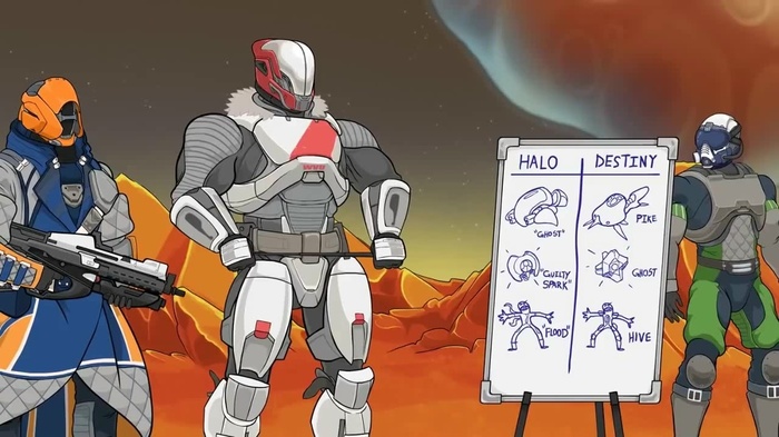 В то же время, Bungie, уйдя на вольные хлеба разрабатывать Destiny, решили в новой игре реализовать тот же подход, что и в Halo: не заниматься лишним ворлдбилдингом в самой игре, выдавая лишь самую нужную для понимания сюжета информацию. Однако второго компонента – сопровождающих книг-приквелов, уже не было. Из-за чего и так довольно рваный сюжет с кучей, внезапно появляющихся персонажей и отсылок на нигде не описанные события, остался для многих слишком непонятным. А из имевшихся в игре кусочков информации общая картина не складывалась и зияла огромными дырами. Что было вызвано как производственным адом в ходе разработки, так и уже сложившимся стилем сценаристики Bungie – недосказанности, как части атмосферы.