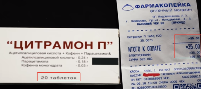 Теперь о преувеличениях для пущего эффекта и возмущений пикабушников: на 8:41 речь идёт о разнице в стоимости в 5 раз. Но ведь фасовка этих таблеток — 20 штук, по цене в 35 рублей. Стоимость одной таблетки — 1,75 рублей.