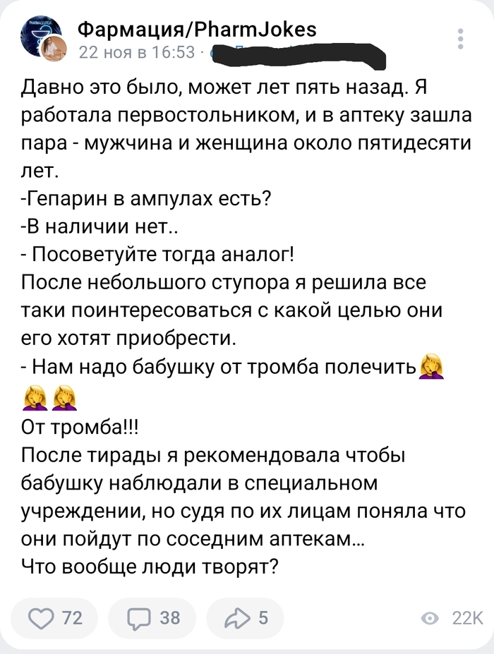 В конце месяца приходит ведомость, а в ней чудесный вычет -12000р. Причём, дополнительно, плюсиком к тем 3000. Я в шоке, спрашиваю заведующую че за нах. Оказывается, на аптеке висел просроченный Докцитацел (противоопухолевое рецептурное лекарство), который по закону вообще списывать с фармов не имеют права. Просрочился он в декабре 2021 года. То есть я там ещё и не работала даже!!! Причём в количестве 2 шт. То есть я оплачиваю то лекарство, которое я вообще в глаза не видела.