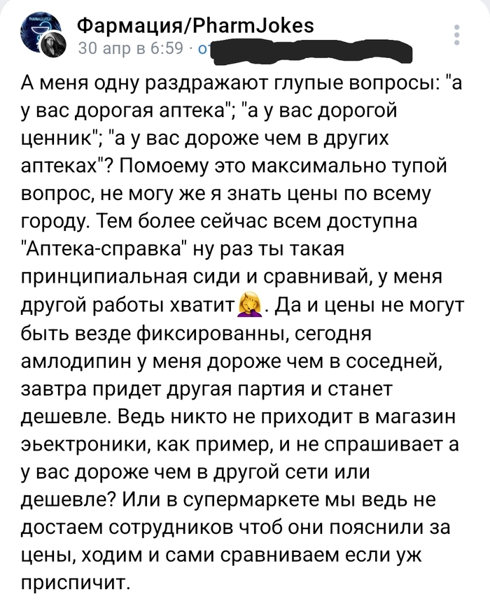 Устроилась я работать в аптечную сеть, кстати, довольно известную и распространенную. В целом, работать интересно, различные интерактивы, обучалки, мотивации, премии, бонусы. Зарабатывала я неплохо и вроде бы жаловаться грех. Но есть моментик, от которого меня бомбит по сей день, больше даже принципиально бомбит.