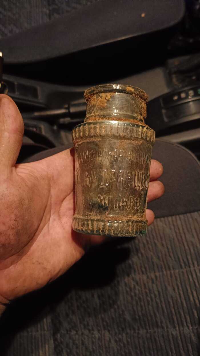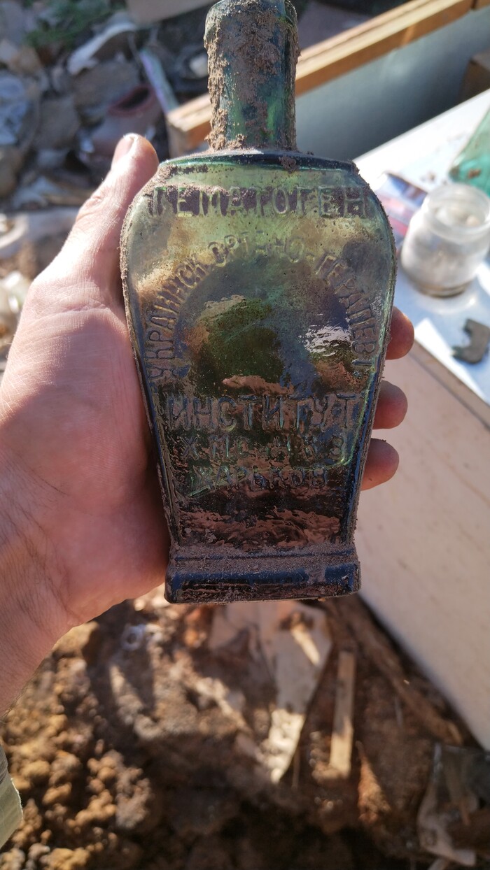 Редкость найти Флакон с надписью, прям отлитая бутылка. Это очень волнительно, когда находишь такую, ( мне повезло, я нашел одну с акцизной маркой Царской России, очень хорошо сохранилась), причём ты не знаешь где она выпадет, в каком месте. С монетами более менее предсказуемо. А тут просто на удачу.