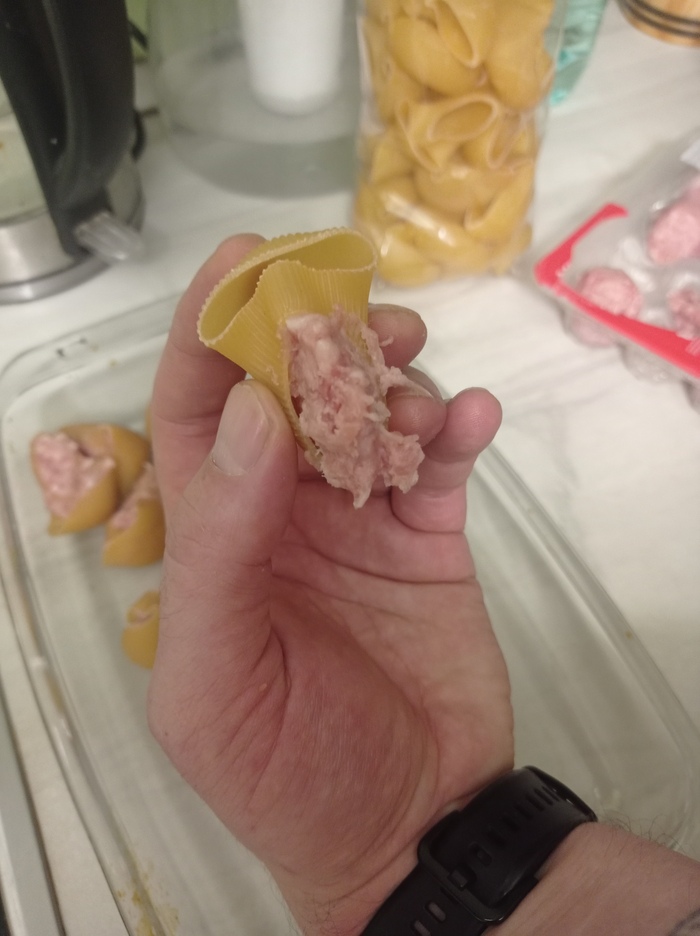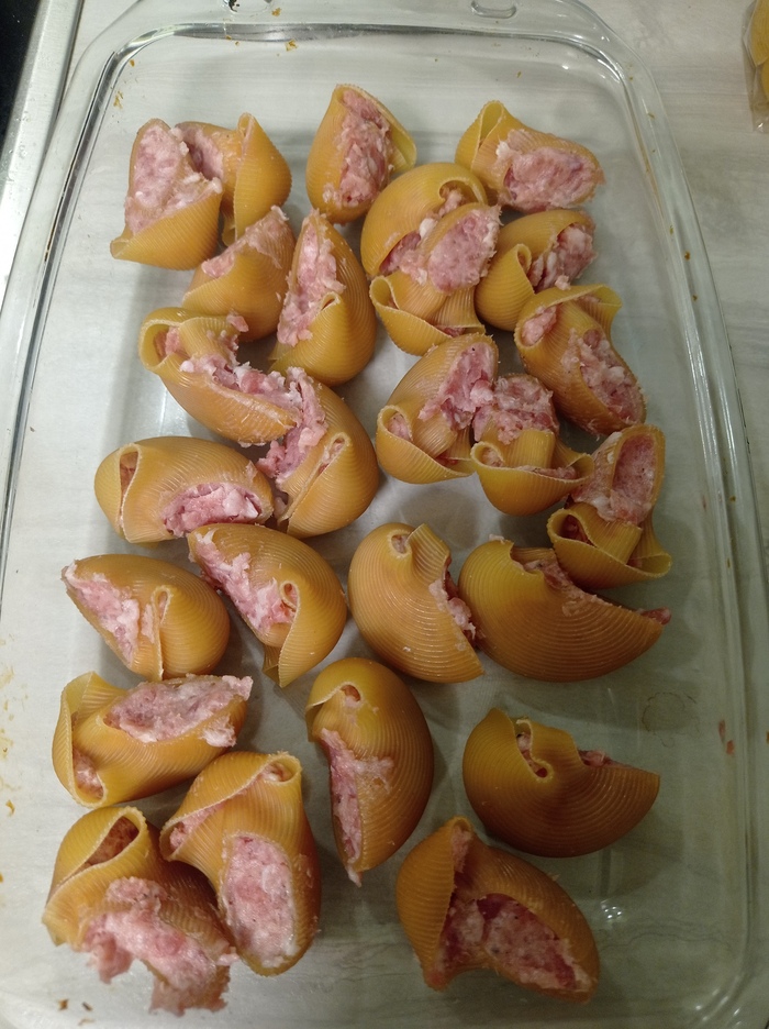 3. Разогреть духовку до 180 градусов, перцы нарезать пополам и удалить серединку. Начинить фаршем и отправить в духовку на 20 минут. Посыпать сыром и отправить ещё на 10 минут.