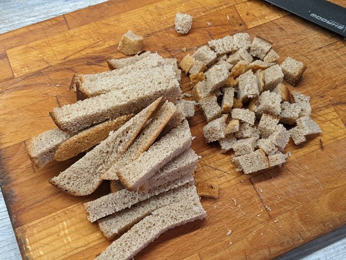 Хлеб - 3 ломтика. У меня «Галицкий», думаю, интересно будет и с различными вариантами «Бородинского».