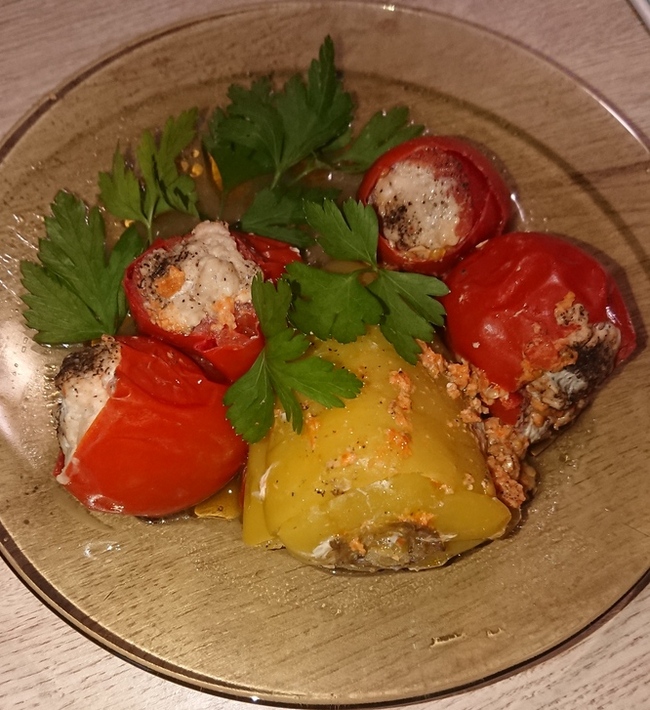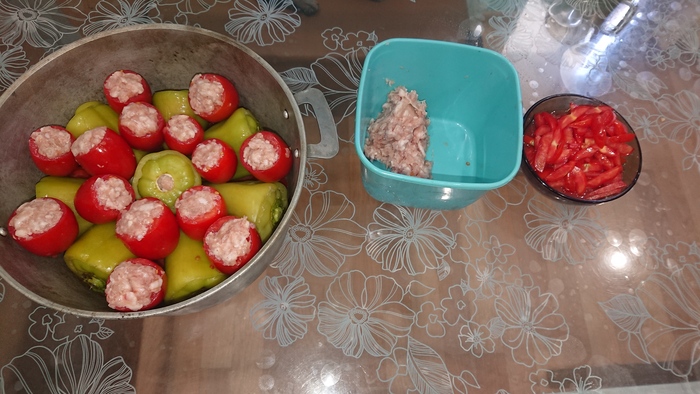 Кушац хочется всегда. Перцы и помидорки заряженные фаршем.