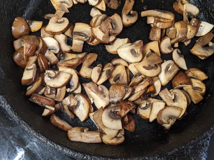 Лук пассеровала на масле до румянца, сняла и на этом же масле обжарила грибы.