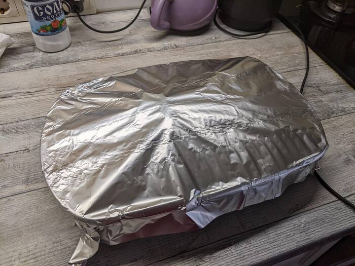 Накрываем фольгой и на час в духовку на 180 градусов.