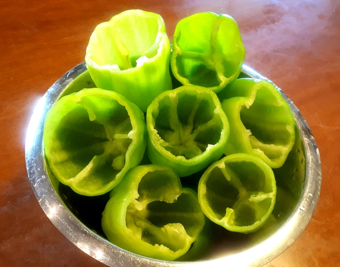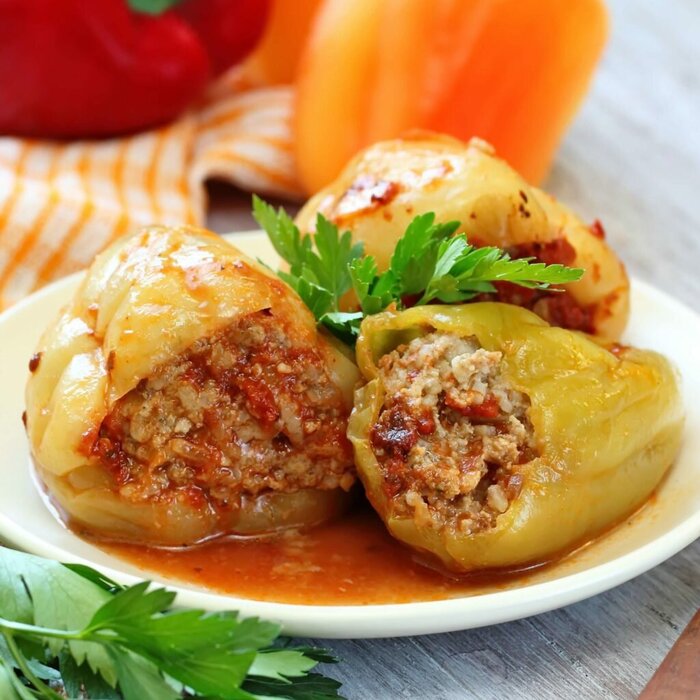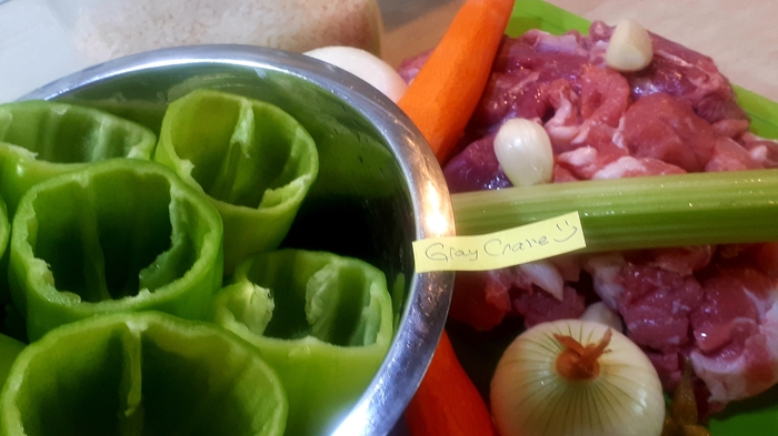 У нас с женой бывают периоды, когда надоедает есть мясо/мясную продукцию. Ну вот прямо не лезет кусок в горло. Мы тогда можем 1-2 недели совсем без мяса обходиться. Вот снова настал такой момент и мне захотелось приготовить что-то новенькое. А потом возникла идея: недавно крёстная готовила фаршированные перцы. Было вкусно. Что если убрать оттуда мясо?