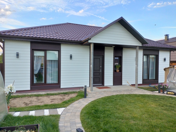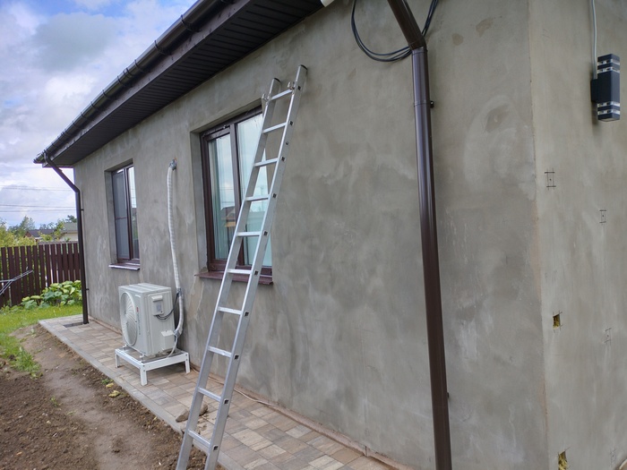 Изначально заказчики планировали сделать штукатурку. Но потом передумали и решили вентфасад. Соответственно дом уже утеплëн.