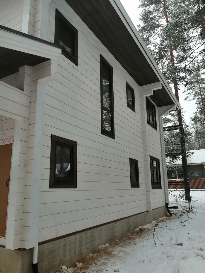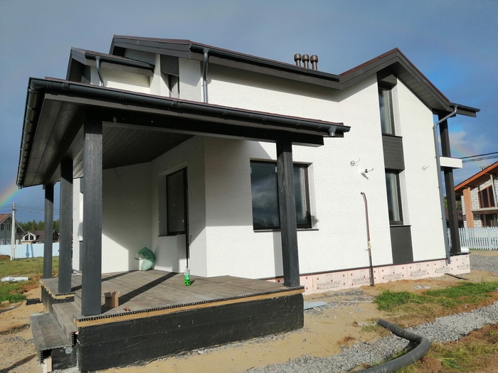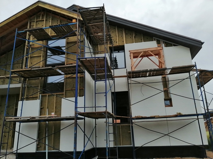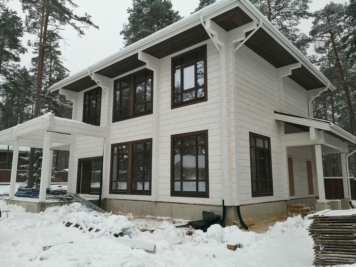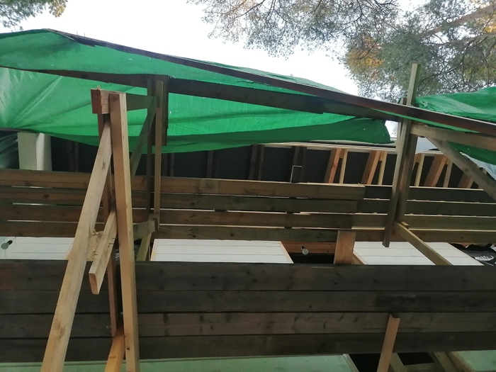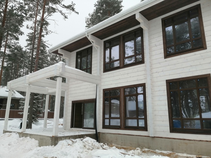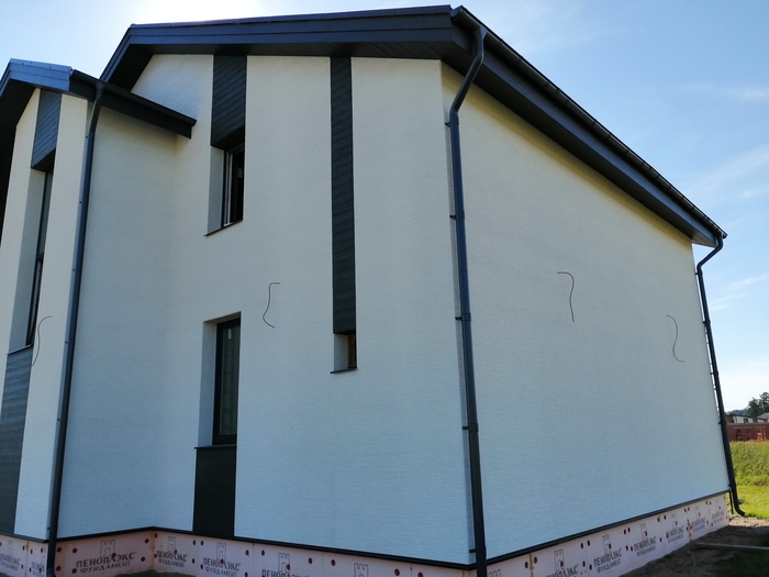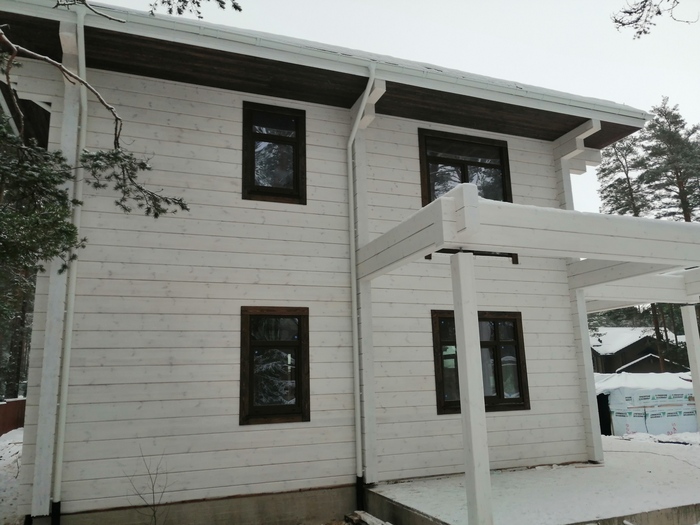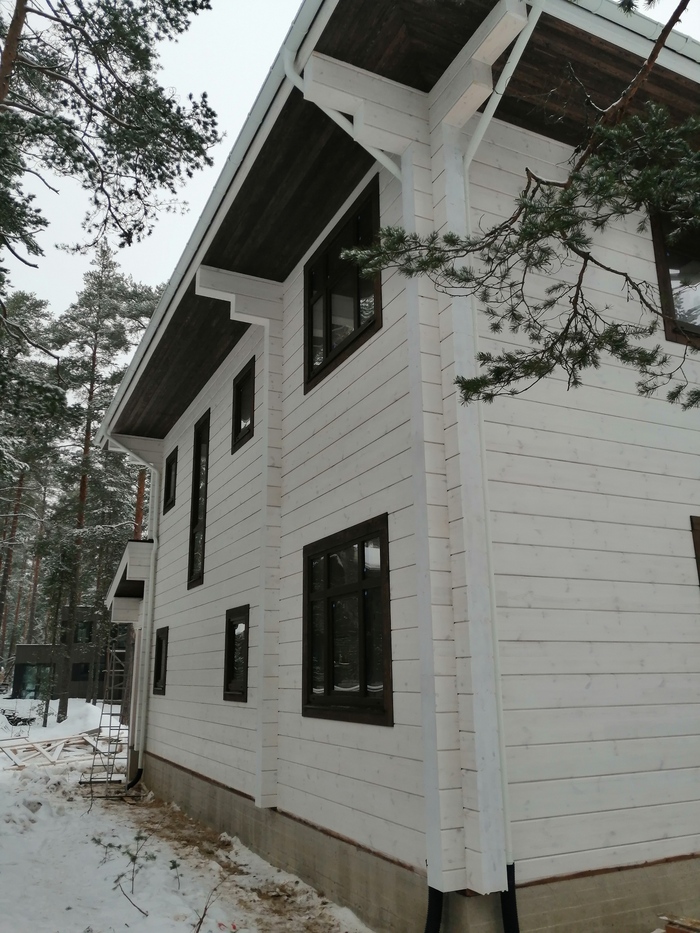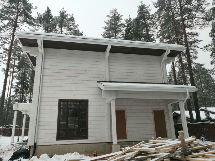 Кронштейны с жëлобами уже были, оставалось только смонтировать трубы. Доски шлифовались, красились и потом уже монтаж.