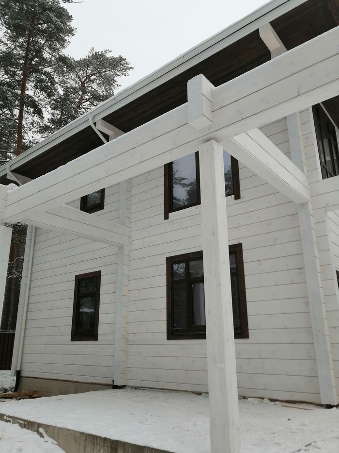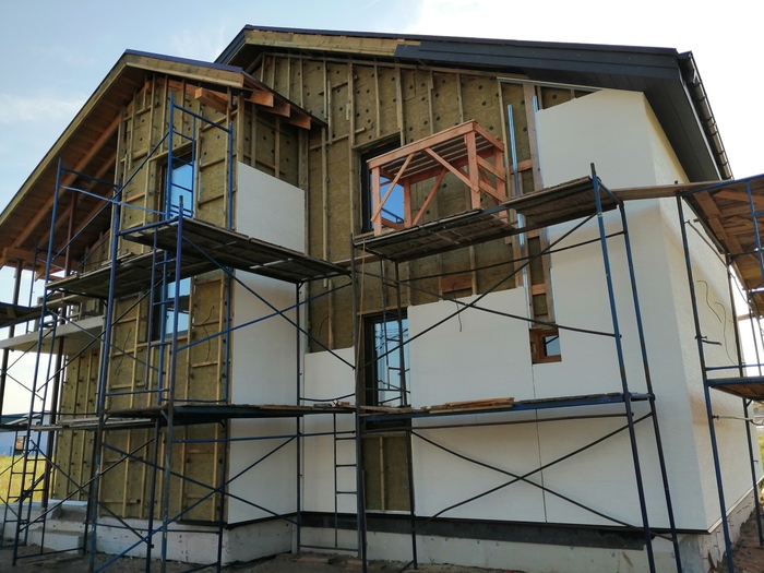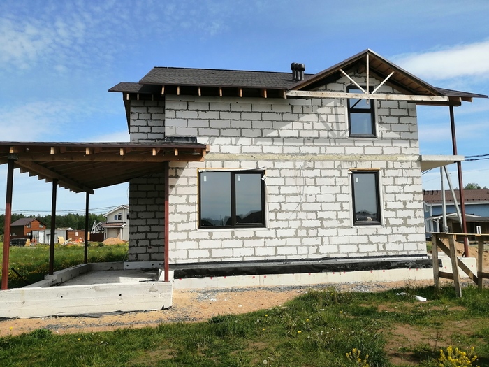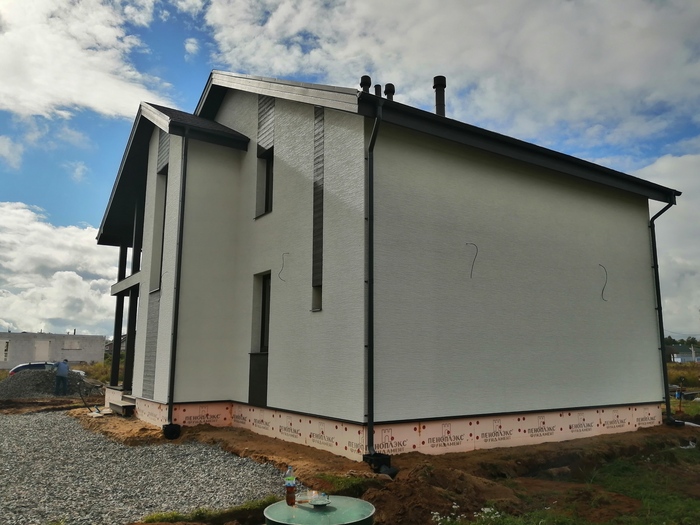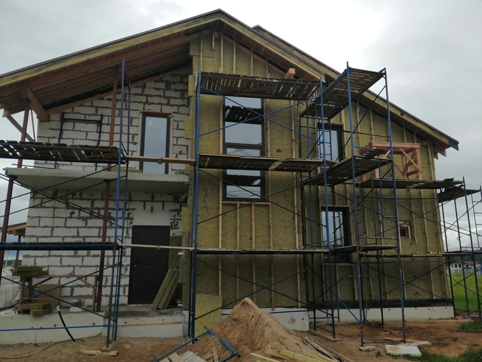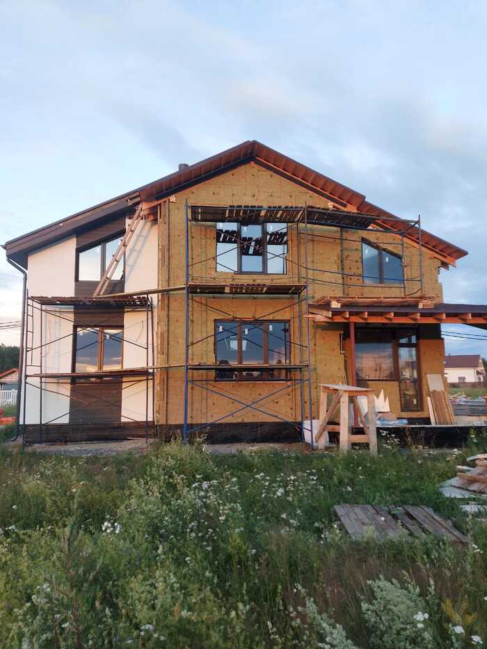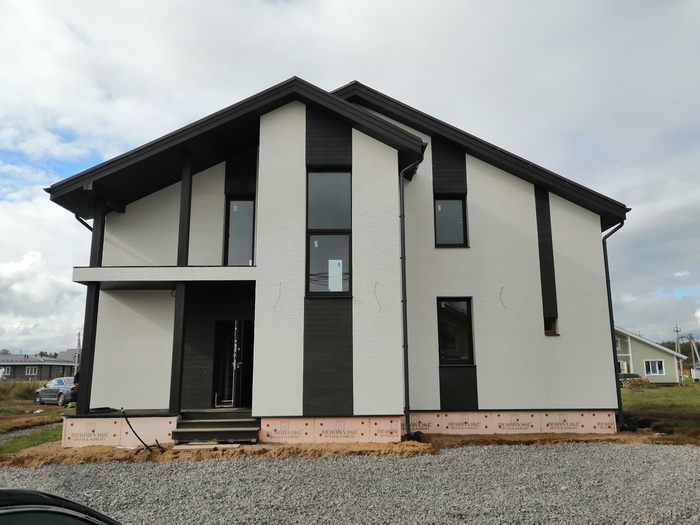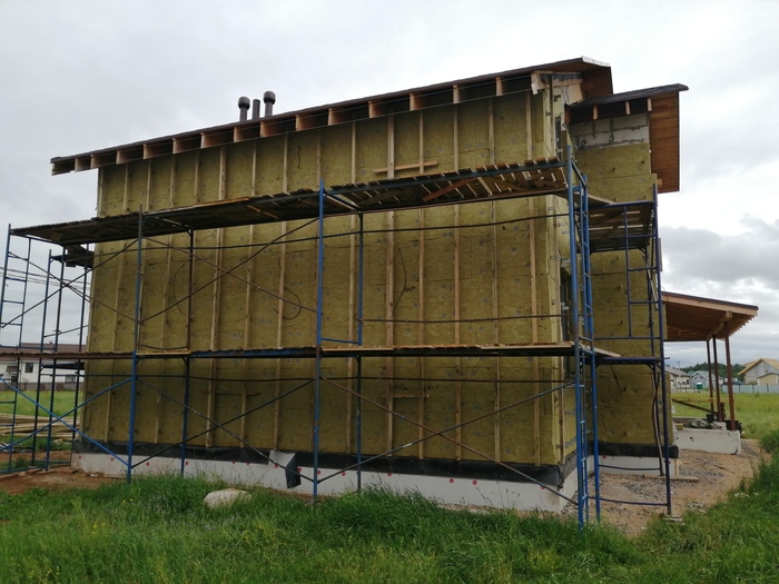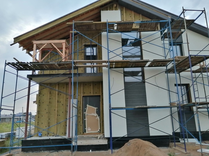 Кронштейны с жëлобами уже были, оставалось только смонтировать трубы. Доски шлифовались, красились и потом уже монтаж.
