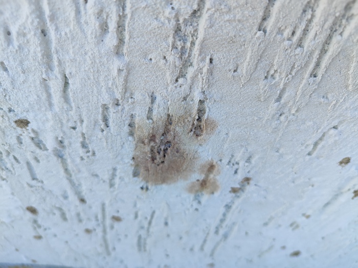 Строители, подскажите, пожалуйста, чем можно вывести пятна с фасадной штукатурки? Похоже на ржавчину, внешнее воздействие. Под штукатуркой пирог и минвата. Нанесена прошлым летом. На других стенах такого нет. Штукатурка Bergauf короед 2.5