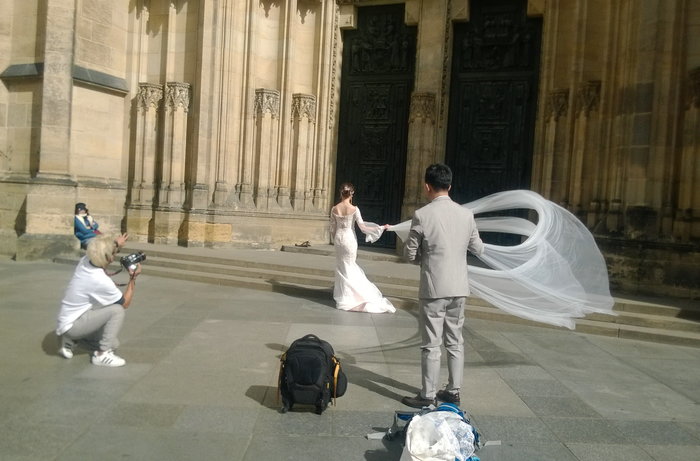 Трудовые будни свадебных фотографов. Интересно было бы глянуть на результат этой фотосессии. Думаю, вышли роскошные сказочные снимки.