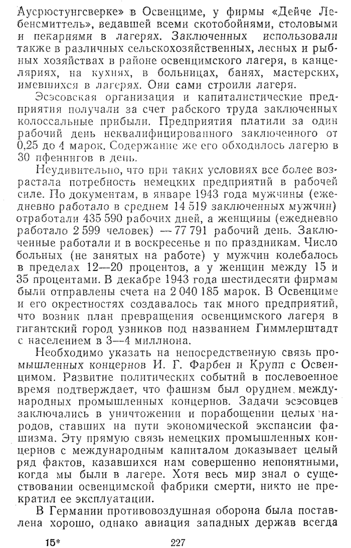 Из книги "Фабрика смерти" Краус О, Кулка Э. Прибыли для концерна Фарбен