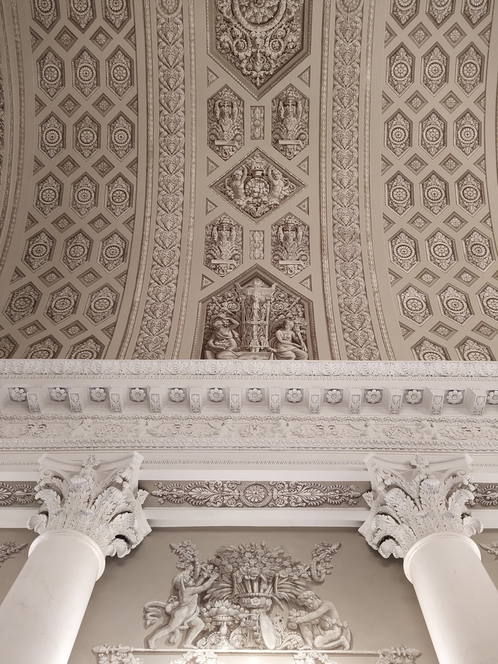 Ходил в Юсуповский дворец. Очень красивое место. Чаще всего если я хожу в подобные места, всегда обращаю внимание на потолок и чаще всего он всегда интереснее чем стены) Вот и тут так же. Конечно хотелось бы все это увидеть в те годы.