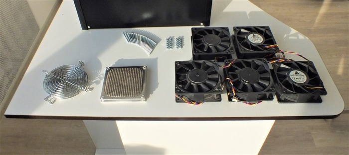 Подготовим вентиляторы к сборке: это как сами вентиляторы, а также решетки, сетки и элементы крепления.