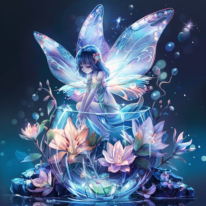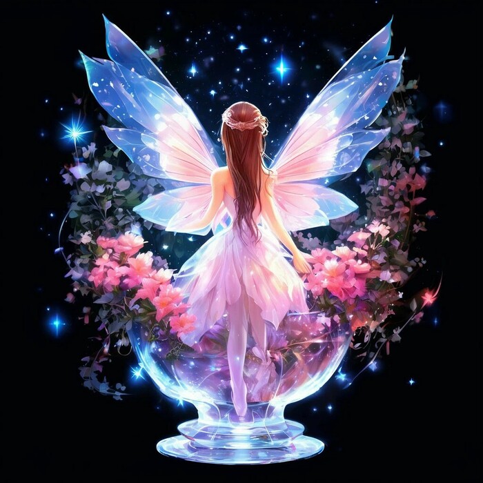 "Маленькая Фея среди цветов" – это милая иллюстрация, пропитанная нежностью и теплотой. Как и все акварели, она отличается прозрачностью, легкостью и воздушностью, подкупает своей простотой, добротой и гармонией. Я люблю акварель, и мне очень нравится, когда акварельные работы нейросетей получаются такими же теплыми, и нежными, как и "живая" акварель.