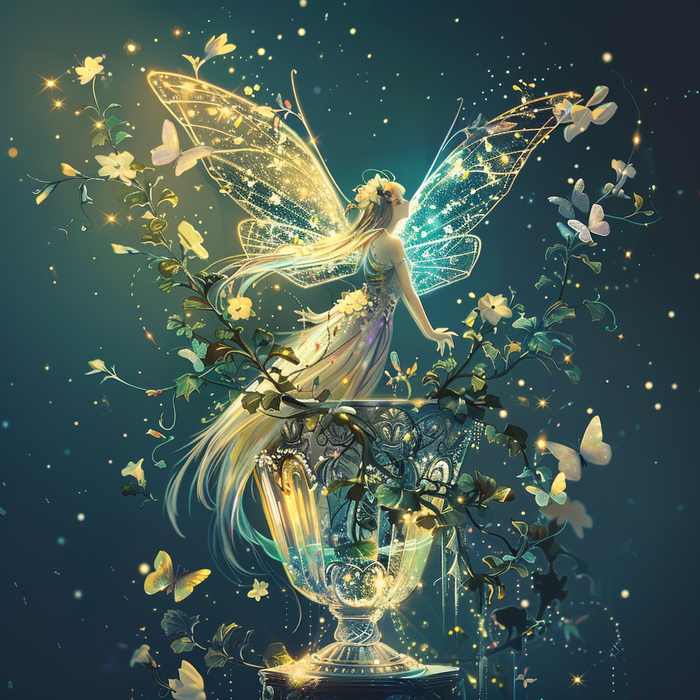 Однажды маленькая волшебная фея с крыльями решила поселиться в чайнике для приготовления чая. Она нашла его на лугу среди травы и цветов и полюбила его за его уют и красоту. Она назвала его Чайник безмятежности и каждый день готовила в нем разные сорта чая из лепестков роз, мяты, лаванды и других растений. Она делилась своим чаем с другими феями, эльфами, бабочками и птицами, которые прилетали к ней в гости. Она была очень счастлива и дружелюбна.