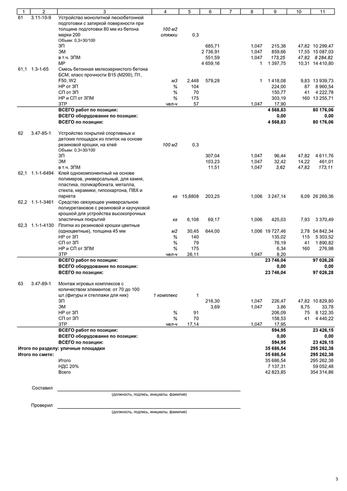 Готова предварительная смета на площадку. Покрытие из резиновой крошки.