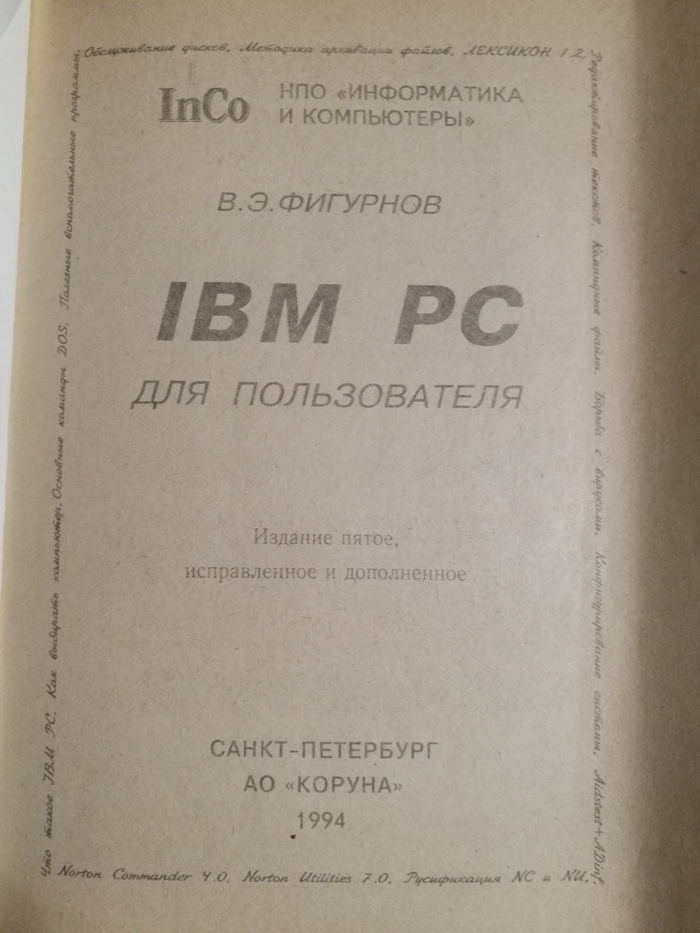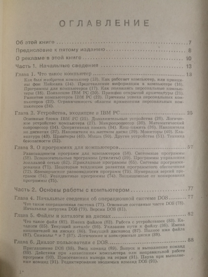 Всё это, разумеется, не умаляет достоинств этой книги, выдержавшей аж 6 переизданий — если в первых изданиях рассказывалось о Лексиконе, ChiWriter'е и Norton Commander'е, то в последних — уже о Windows 95 и MS Offise. Даже не знаю, есть ли сейчас литература такого же уровня для начинающих, более-менее подробно дающая необходимый минимум знаний о том, как работает железо, а не предлагающая примитивные инструкции на уровне популярной серии "для чайников".