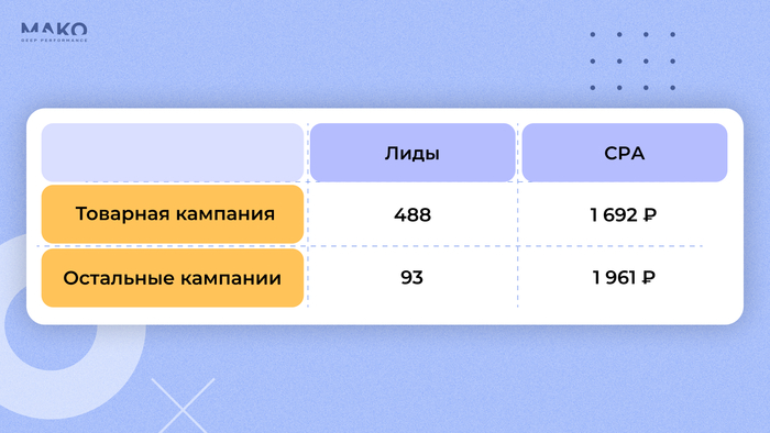 Интересно, что даже после запуска других кампаний, товарная по фиду стабильно оставалась самым эффективным источником — благодаря высокой релевантности и точной работе алгоритма.
