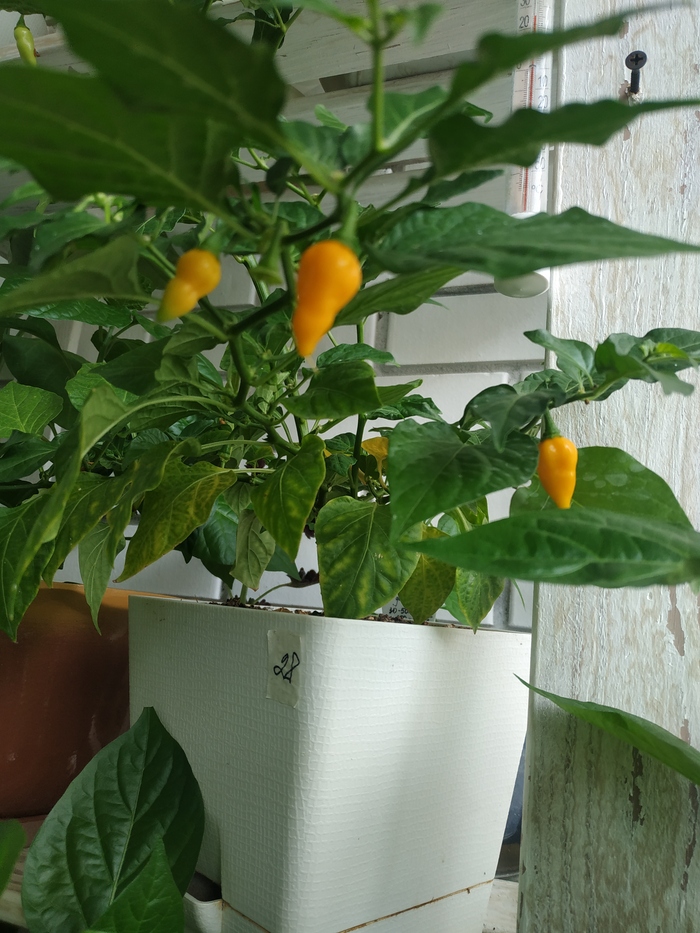 Вот такой есть товарищ на подпоре в керамзите. У меня нет ни ес, ни пш метров. Заливаю Штейнера, когда поплавок ниже уровня. Два растения, вроде были записаны как скотч боннет, что вырастет глянем, пара плодов есть уже.