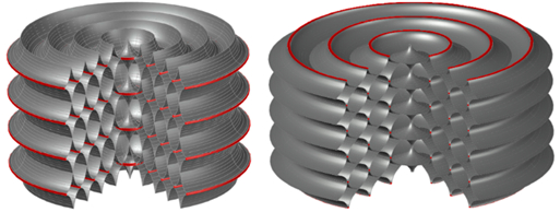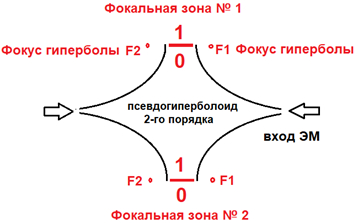 - ЭМ волны, входящие внутрь псевдоповерхности распределяются и концентрируются в фокальных зонах.