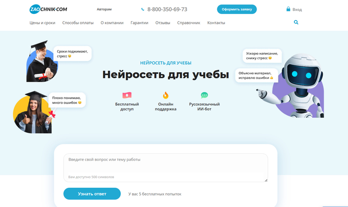 интуитивный интерфейс, интеграция с платформой Zaochnik;