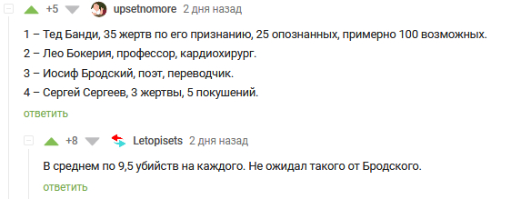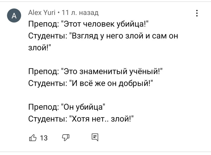 "Интересное деление лица, которое говорит о том, что он любит делать всё исподтишка. Нос, уходящий в правую сторону, говорит, что он любит всё делать скрытно, у него тип тихушника. Верхняя губа у него тоненькая и с галочкой посередине — значит, это человек, который склонен к резкому перепаду настроения. Такой стихийный характер. Хочу обратить внимание также на мочку уха, она квадратно-срощенная, плюс у него на левой брови имеется проплешина, всё это вместе — показатель того, что человек действительно может быть склонен к убийствам"