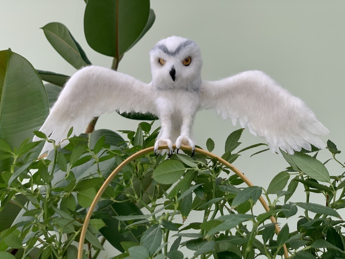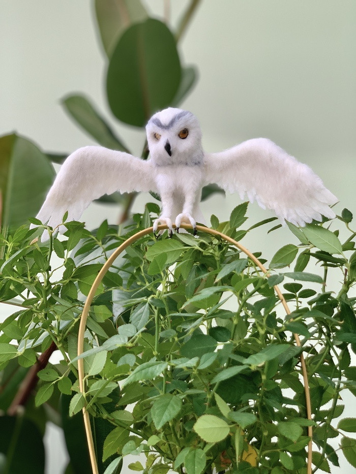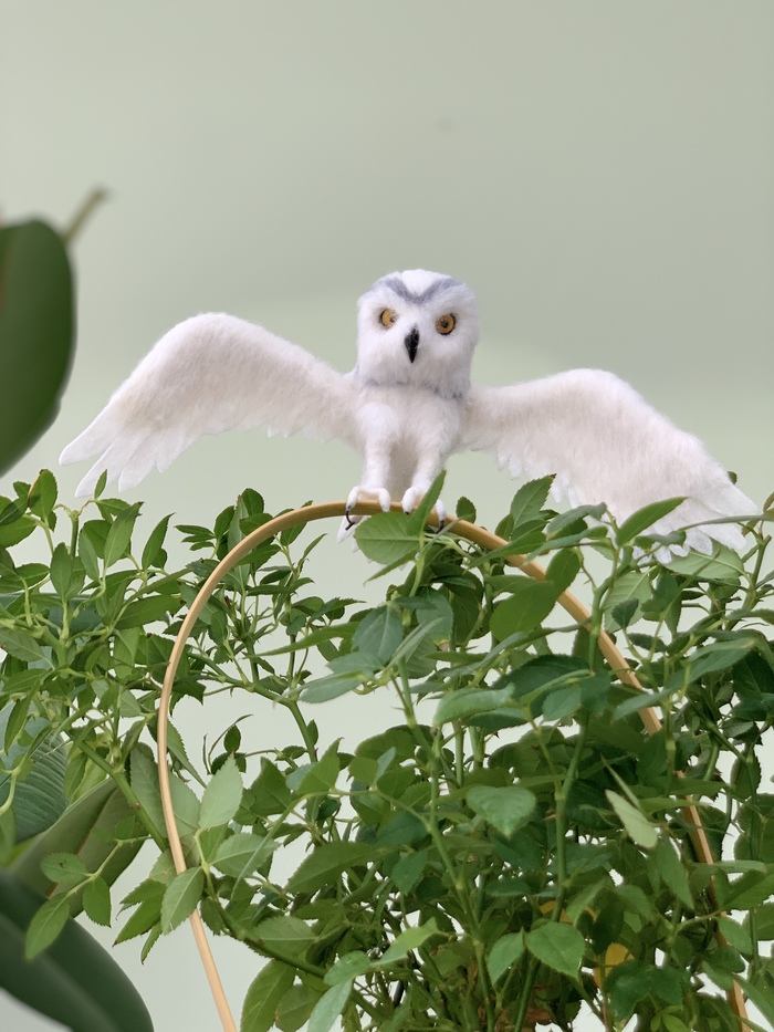 Наконец-то родилась сова 🦉 Птица сделана из шерсти мериноса, клюв из глины, лапы на проволочном каркасе🤗.