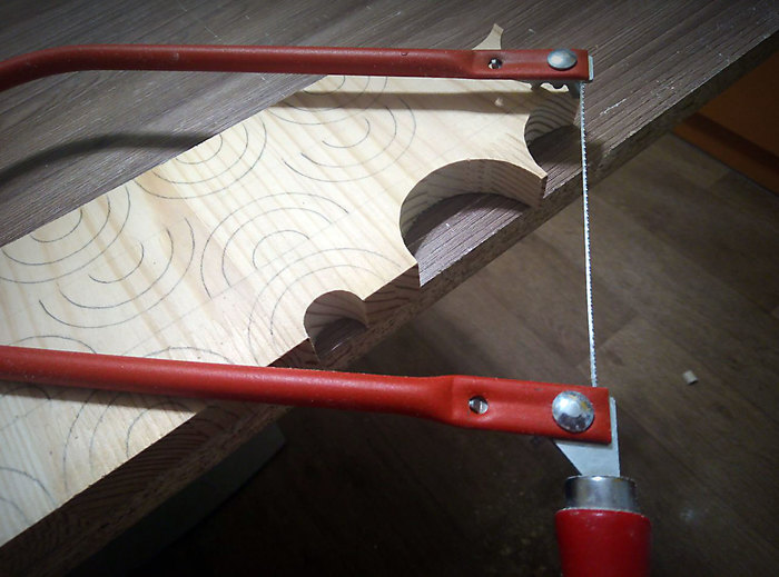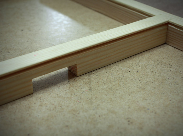 С обратной стороны каркаса сделал углубление в толщину ДВП, утопил туда небольшой лист ДВП и пригвоздил его: