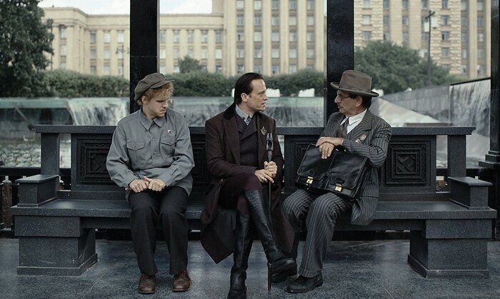 Съёмки в римском квартале EUR усилили эффект: стерильные фасады и пустые площади продолжили риторику "идеального завтрашнего дня" времён Муссолини. Узкие оконные проёмы, массивные пилоны, повторяющиеся арки - всё подчинено одной идее: человека можно лишить индивидуальности, растворив его в граните.