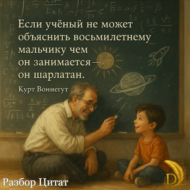 ✨ «Если учёный не может объяснить восьмилетнему мальчику, чем он занимается — он шарлатан.» — Курт Воннегут 👨‍🔬📚