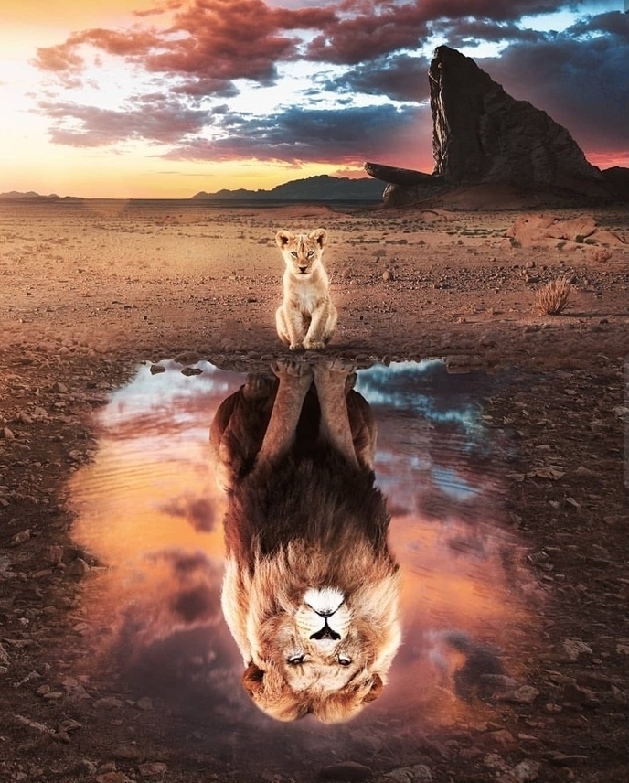 У мастеров Дзен есть притча. Однажды маленького Львёнка-сироту подобрали овцы – и вскормили его своим молоком. Он подростал, крепчал – но полностью отождествлял ся с овцами, с трусливой овечьей психологией! И как-то раз старый Лев охотился в тех краях... И узрел великое чудо : мирно пасущийся с овцами и жующий прошлогоднюю траву Львёнок!!! Он бросился к нему, схватил за загривок, встряхнул – но тот лишь жалобно скулил и блеял по-овечьи, ведь его ничему другому не учили!! Тогда озадаченный Лев потащил «заколдованного» Львёнка к озеру – в гладком зеркале которого тот узрел своё отражение, и вдруг понял, что он – тоже Лев! И тут же прозревший Львёнок зарычал, и Память Рода вернулась к нему – и Зов Предков был им услышан. Сколь часто нас, юных Львят, воспитывают и учат разные овцы, курицы, обезьяны... Суки, гадины, козы, свиньи в людских телах. И счастлив тот из Львят, кого найдёт однажды старый Лев-Мастер, в котором он узрит своё Отражение – и вспомнит всё, и станет ТЕМ КТО ЕСТЬ !