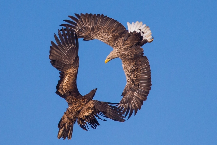 Но старый орёл схватил его когтями – и поднял в воздух. Молодой орёл даже не пытался вырваться. Он прощался с жизнью. И тут старый орёл разжал когти – и выпустил его. Молодой орёл камнем полетел вниз – кувыркаясь и роняя перья.