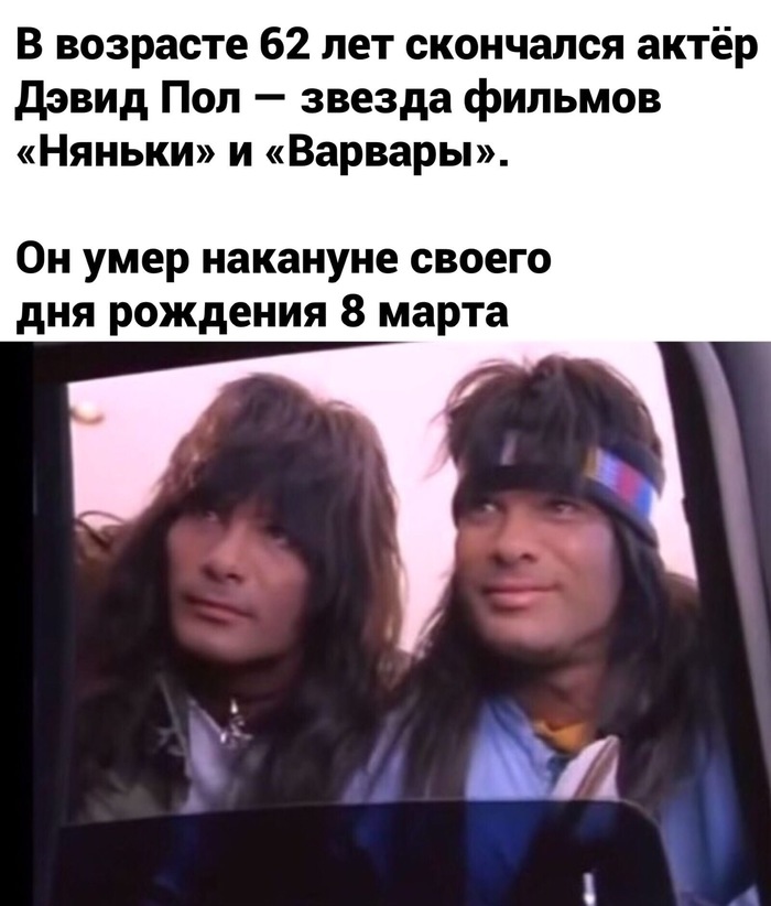 В США в возрасте 62 лет скончался актер Дэвид Пол. Вместе со своим братом-близнецом Питером он играл в популярных в 80-е годы фильмах "Варвары", "Двойные неприятности", "Няньки".