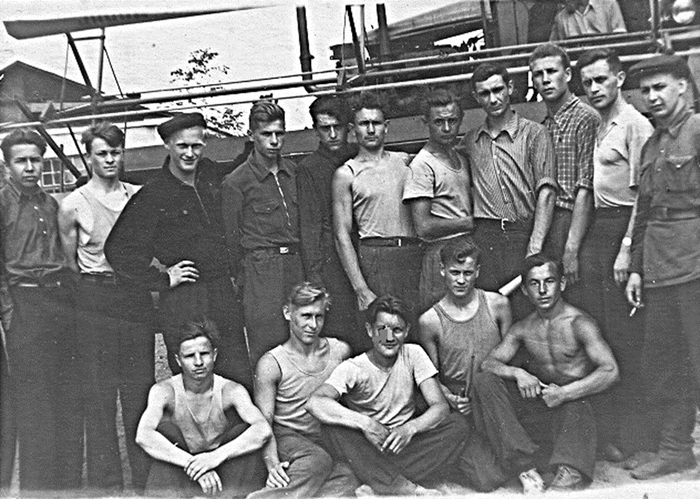 Рис.2. Изучаем самоходный зерноуборочный комбайн. Я – третий справа в клетчатой рубахе. Фото из личного архива