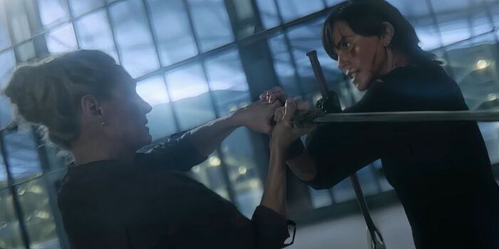 МНЕНИЕ: Слишком долго снимали продолжение к фильму, который во времена пандемии (было дело) показал слишком хорошие цифры просмотров на площадке, чтобы обошлось без него. Первая часть не была жанровым шедевром, но и однозначно плохим фильмом, прозвать я его не смог, так как одноразовое зрелище справлялось со своим под-пивасно-в-пятницу предназначением. К сиквелу я оказался морально совершенно не готов: тупо (логика отсутствует слишком часто), лениво (хореографию схваток и перестрелок будто ставили пенсионеры), предсказуемо (клише на клише) и очень скучно (пришлось реально прилагать усилия, чтобы не начать смотреть его спиной). И всё это при полном отсутствии задора. В итоге меня отблагодарили финальным твистом, неуклюже обрывающим кино и нагло обязывающим ждать и третью часть, что немного даже разозлило. При всём уважении к Шарлиз Терон, Уме Турман, и Маттиасу "Пыне" Шоннартсу, хотелось бы порекомендовать им обращать внимание не только на гонорары, но и на сценарий, я конечно понимаю, что кушать хочется, а времена нынче суровые, Кейт Бекинсейл не даст соврать, но такими темпами можно и до фильмов совсем непонятной категории скатиться, растратив попутно весь кредит зрительского доверия.
