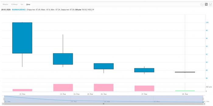 На первичных торгах удалось собрать лишь около 0.5 млрд руб. Организаторам пришлось выкупать бумаги и затем сбрасывать их на вторичный рынок, что вызвало обвал цены на 10%.