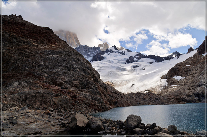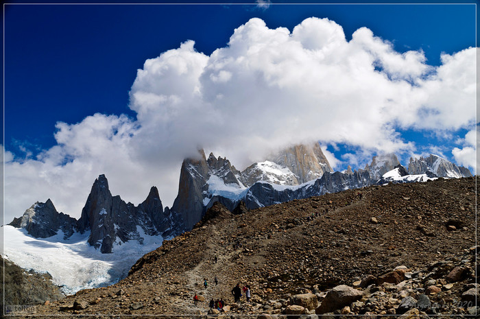 За облаком должна торчать доминирующая вершина (Fitz Roy), но погода в тот день была не очень. Дальше пешком не пройти.