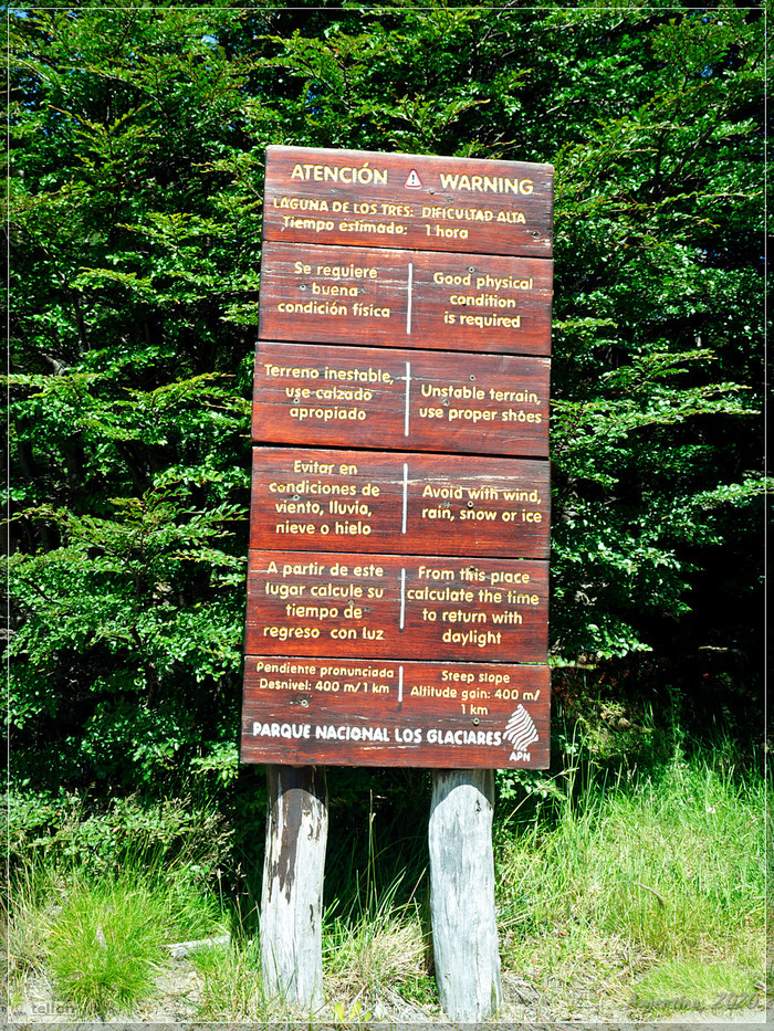 Путь от города до Laguna de los tres (Лагуна для троих) занимает минимум 3 часа если без остановок.