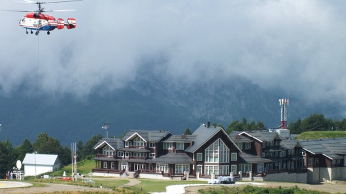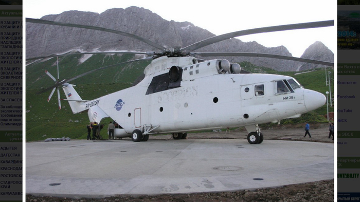 Аварии вертолётов Неподалеку от поселка Солох-Аул «Роснефть» построила базу с вертолетной площадкой, откуда вертолетами и поныне завозят все необходимые материалы для строительства и эксплуатации «Лунной Поляны». До 2010 года вертолеты совершали несколько десятков рейсов в день. Первая катастрофа произошла уже 4 сентября 2003 года, когда вертолет компании «ПАНХ» врезался в вершину горы Фишт. Погибли 3 члена экипажа и 6 пассажиров. В 2004 году грузом, сорвавшимся с подвески вертолета, был убит рабочий. Обломки вертолета после катастрофы 26 сентября 2010 г. Фото из отчета МАК 26 сентября 2010 года вертолет компании «Аэро-Камов» рухнул прямо возле резиденции. Погибли два члена экипажа, третьего вытащили рабочие.