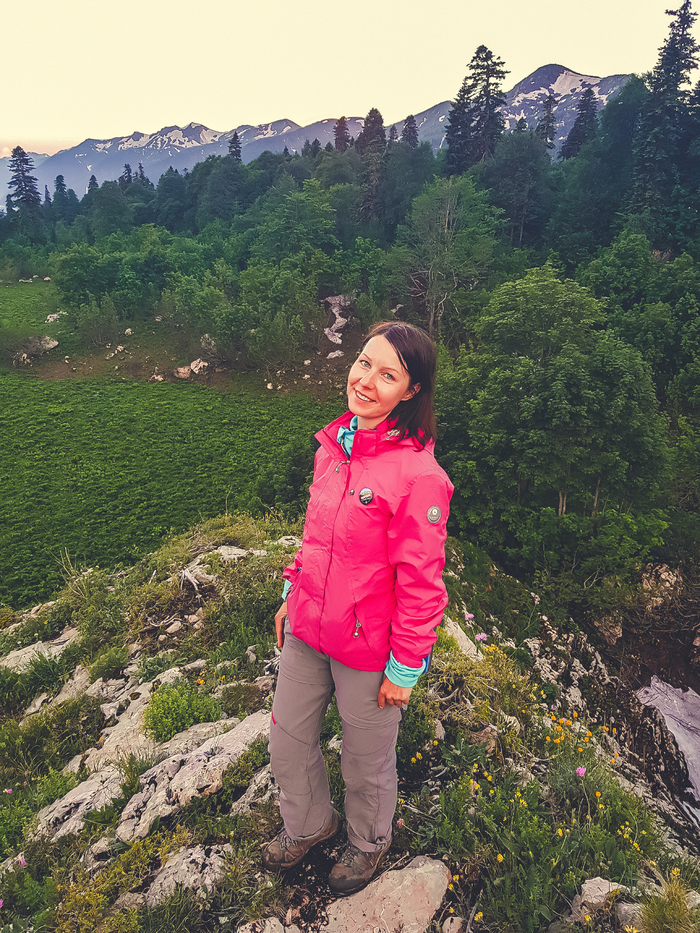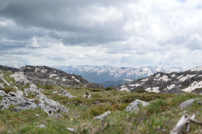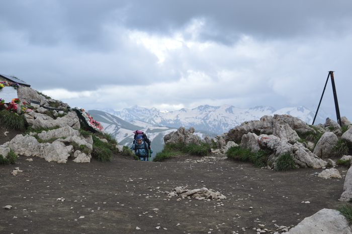 Мы подошли к перевалу Абадзешский, ветер тут оооочень сильный, но отсюда открывается вид на Кавказский хребет. Дух захватывало от красоты, которую мы видели. В этот момент мы ни о чем не жалели.