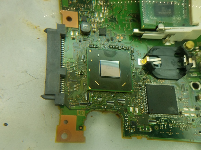 Ноутбук, который два года мотался по сервисам. Не прошиваемая, «битая» флешка. Возможно это была первопричина неисправности,а может её добили в сервисе. Ужаренный мост. Украденный проц. Покалеченный ноут. И ремонт, который занял два часа.