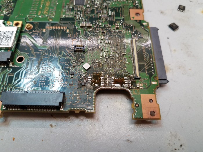 Не считая покалеченного корпуса и оторванной антенны, увидел что паялись флешки BIOS и EC.
