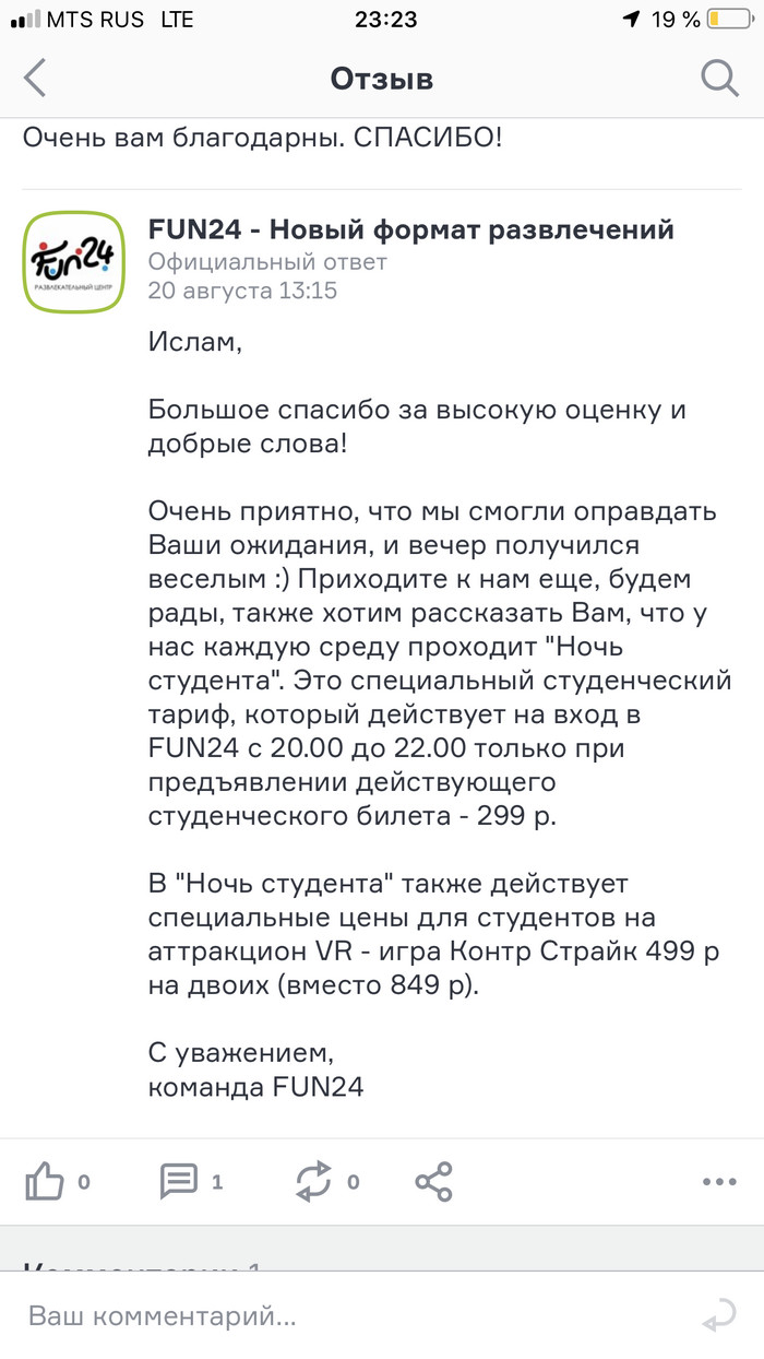 - отвечайте на отзывы немедленно. Да, по закону вам положено до 5 рабочих дней реагировать на отзывы, но мы стараемся опережать ожидания и отвечаем немедленно, иногда через 5-10 минут после того, как Гость написал отзыв.