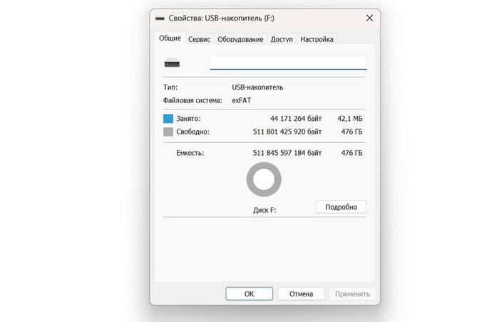 Отформатирована в exFAT, что обеспечивает совместимость с Android/MacOS. Доступная ёмкость 476 Гб. Тестовые приложения дают следующие ID: