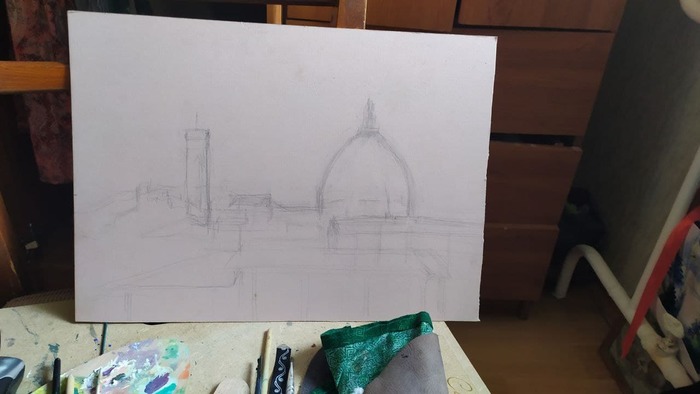 Собор Флоренции. Рисунок темперой