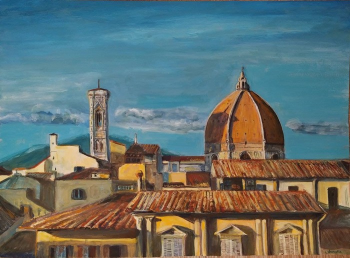 Ракурс не совсем обычный, собор "выглядывает" из-за других домов - это вид из окна Палаццо Веккьо. Делала фото, пока была на экскурсии, обычно всегда стараюсь делать работы со своих снимков.